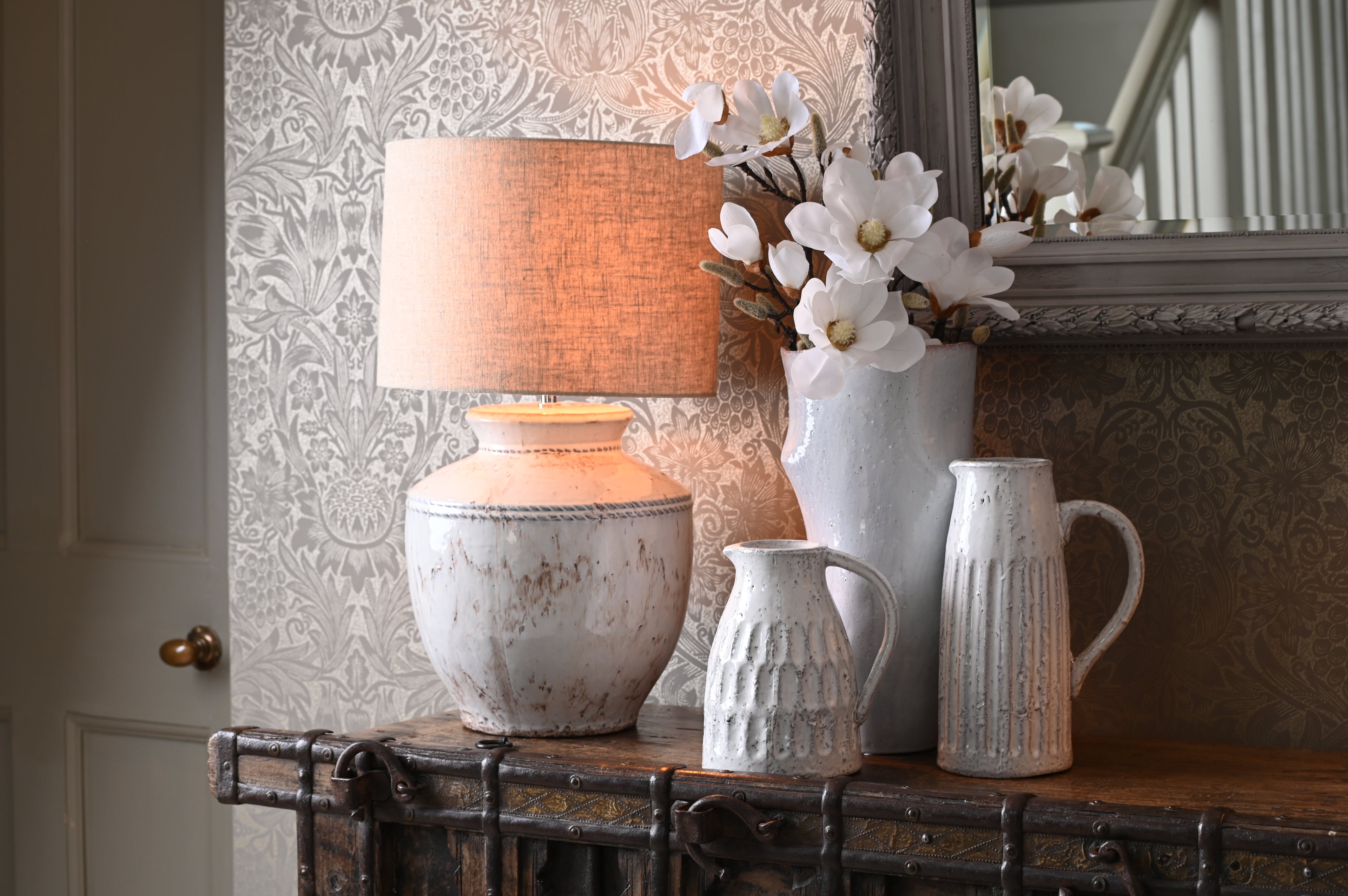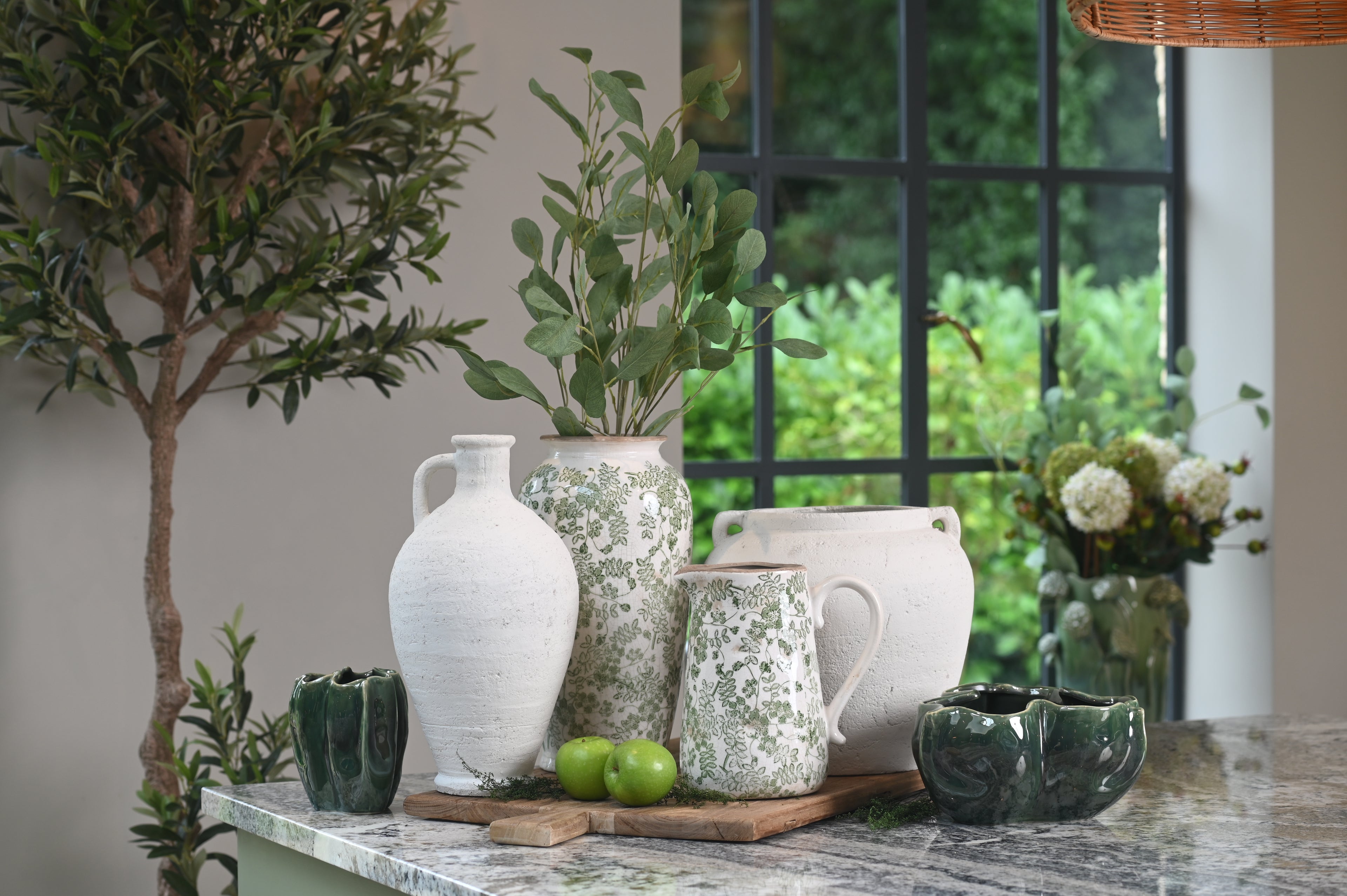 Handcrafted ceramics are matched with decorative tabletop pieces, distinctive wall art and stunning feature size mirrors. These are combined with realistic faux flowers and statement furniture pieces to create a unique collection, which is a hybrid of classic British living with Nordic influences and a sprinkling of Chinoiserie.