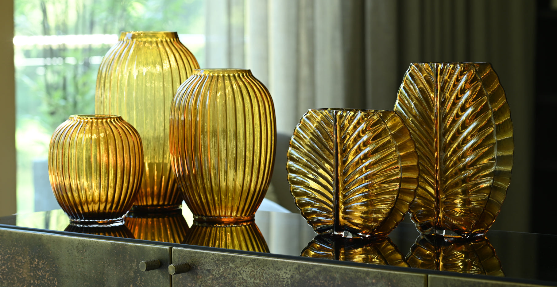 High-quality glassware in a variety of shapes and sizes, in dazzling finishes... From cold-cut vases in uniform, fluted designs, to mouth-blown warm-cut vases in organic shapes that really catch the light.